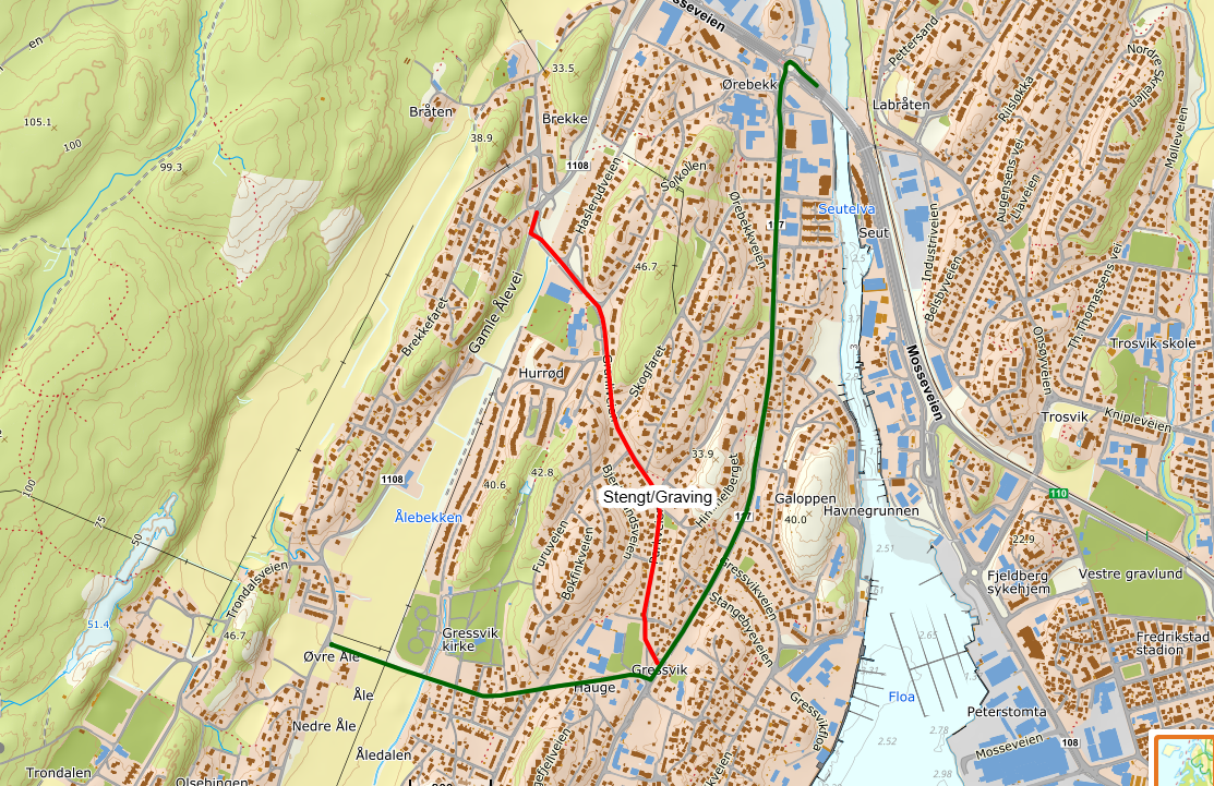 Buss 199 som kjører fra Gressvik torg kl. 08.32 slipper gjennom og kan kjøre ordinær rute om morgenen. Buss 115 fra Fredrikstad kl. 08.30 og ut dagen må kjøre Storveien til og fra Fredrikstad – Vikane. Se kart her.