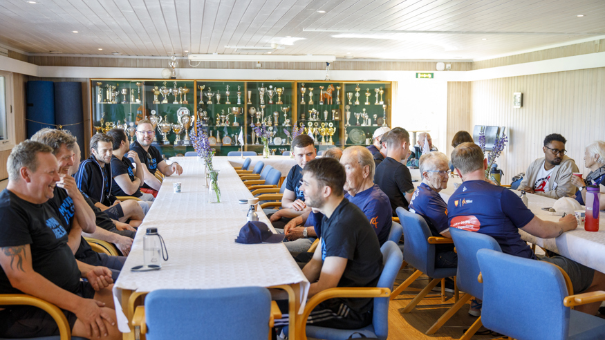 På sommeravslutningen ble det gode samtaler, snitter, kaffe og kaker – og selvfølgelig en fotballøkt.