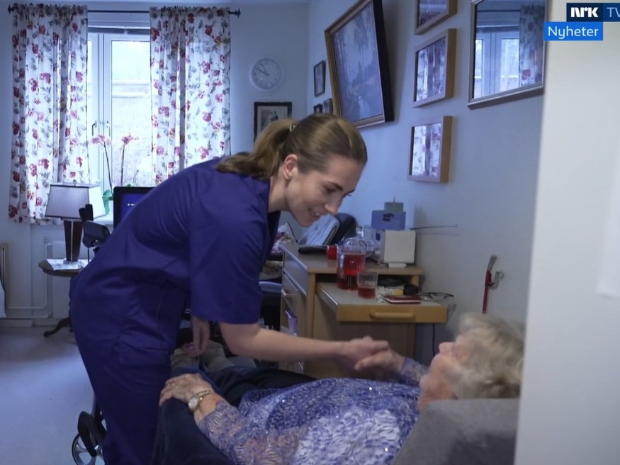Det er rift om legestillingene på sykehjemmene. I tillegg har vi fått på plass gode, stabile fastleger. – Det gjør at vi nå bruker mye mindre penger på legevikarer, sier Janka Ekrem Holstad, direktør for Helse (foto: skjermbilde fra NRK Østfold).