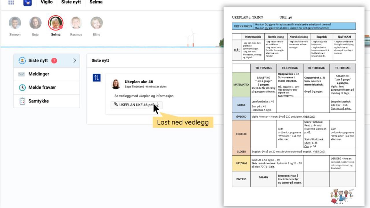 Tidligere har ukeplaner vært publisert på skolenes hjemmesider. Disse finner du nå i Vigilo.