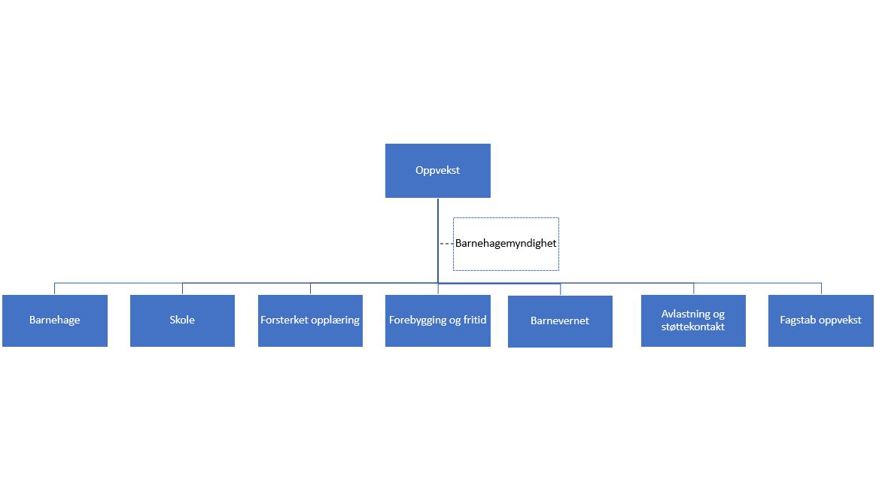 Kommunen skal organisere oppgavene den har som barnehagemyndighet adskilt fra oppgavene den har som barnehageeier for å ivareta tilliten til kommunen upartiskhet som barnehagemyndighet. Myndighetsansvaret ligger i et eget myndighetsledd under direktør for utdanning og oppvekst.