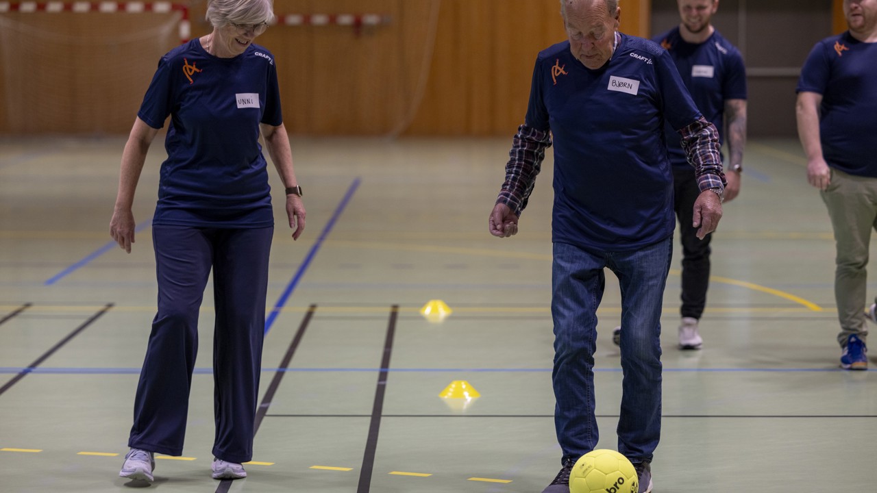 Gåfotballtrening for personer med demensdiagnose består av ca én times trening gåfotball, etterfulgt av sosial hygge med mat og kaffe. Mosjon og sosial møteplass i skjønn forening!