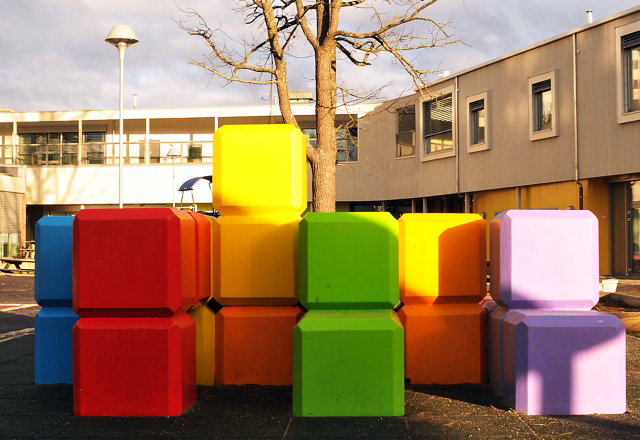 Kunstprosjektet består av 7 ulike betongskulpturer som har lånt form fra det kjente spillet TETRIS. Betongelementene har ulike farger, diameteren er 50cm x 50 cmx 50 cm. Kunstprosjektet var ferdig i 2012.